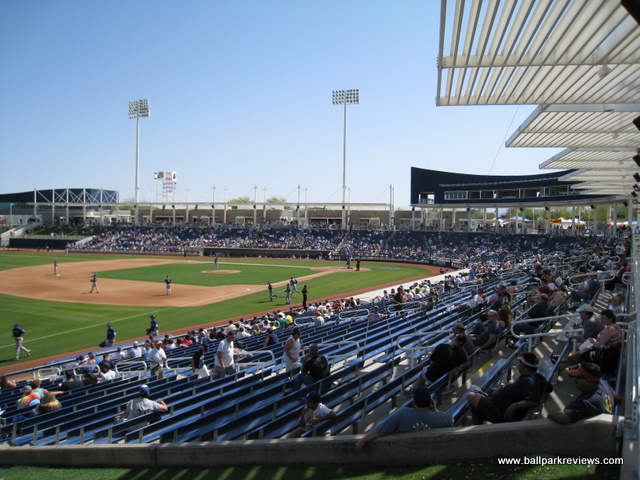 Maryvale Baseball Park got a bit of a face lift a few years ago and has hosted the Brewers since 1998. The 7000 person seating capacity makes it the smallest stadium in the Cactus League, but the small size and covered seating make this a great Spring Training venue.