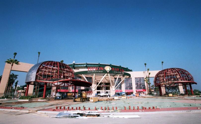As part of negotiations with the city over renovations, the team would keep t “Anaheim” in their name but the team could sell the naming rights to the stadium, which they did, resulting in Edison International Field of Anaheim from 1998-2003. Extensive renovations were made for the 1998 season, including the outfield rock pile and water features, along with a new stadium facade that included the iconic giant helmets.