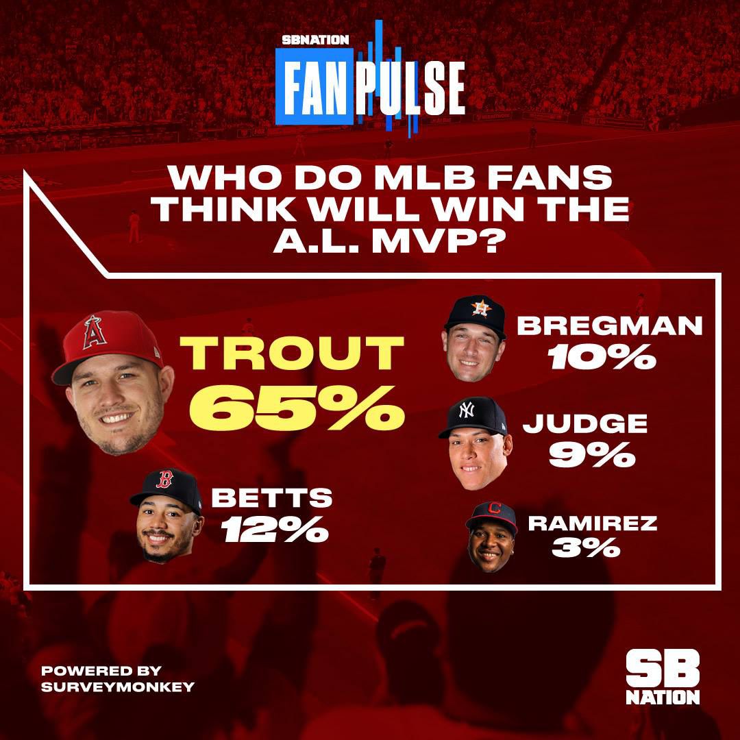Across baseball, fans were asked who would win the AL MVP in 2019. They think that Mike Trout will take home the crown!